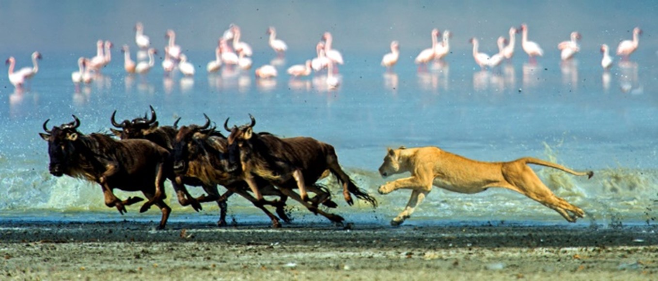 From the North Serengeti we move on to one of the most dramatic UNESCO World Heritage Sites, The Ngorongoro Crater. Our camp is perched high above the crater floor with fabulous views of sunset. We leave early each day as mornings are the best time to be in the crater. On the floor of the crater, we have the chance to see black rhino, huge bull elephants, herds of gazelles, zebra, and buffalo. There are lakes and ponds that can have flamingos, saddle bill storks, grey heron, hammer cop and especially African crowned crane. Lions are always active in this area, and we have every hope of seeing a serval cat! There is only one admission to the crater per day so we will stay until the day warms and the action slows. When we return to camp, we have the rest of the afternoon to relax, explore the crater rim for many different species of mountain birds, and work on our photos.